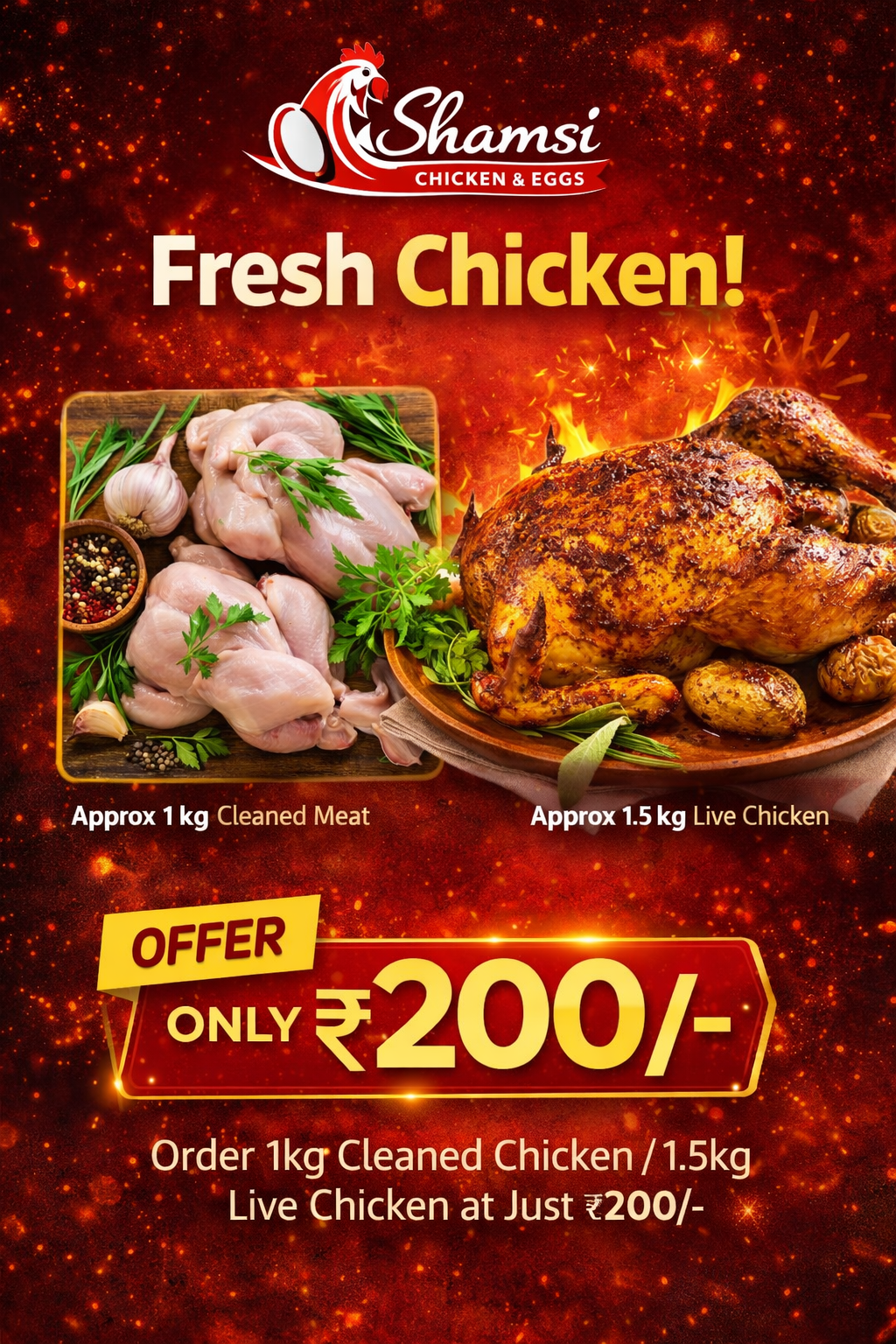 Our fresh farm-raised chicken is sourced daily from trusted farms and hygienically processed to ensure superior freshness, tenderness and taste. Weighing approximately 1 kg meat, this chicken is available whole or neatly cut as per your preference. Juicy, flavourful and versatile, it is ideal for curries, frying, biryani and wholesome family meals. Prepared fresh for everyday cooking you can trust.